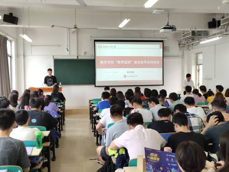 5月14日下午,数学学院“数梦蓝图”就业指导讲座在翡翠湖校区举行。平安产险安徽分公司人事经理孔凡荣和DXCtechnology 产品研发部于鹏来校与学院2018级本科生交流。 孔凡荣以《金融保险行业对人才的需求》为题,结合...