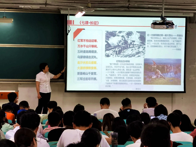 宣讲员们从长征诗词、延安精神、五四运动等角度,精彩地讲述了抗日战争史、中国共产党史与新中国史。魏婷老师以毛主席的诗词为主线,讲述了井冈山时期、长征时期和五十年代的主席诗词中的党史,在《忆秦娥·娄山关》《十云字令》等诗词中,感悟主席的乐观精神和时代的艰苦使命。韩玉洁老师以延安精神为脉络,以延安新华广播电台为主角,分别从力量、奋斗与真实三个角度,讲述了新华广播电台的创建背景,建设过程和发展历史。盛鸣宇老师用轻松诙谐的语言生动地梳理了中国共产党发展的历程。许傲同学从巴黎和会开始,讲述了五四运动的死因,意义与五四精神的当代价值,丰富的视频素材使党史故事充满了。