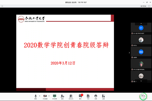 为进一步鼓励学生参与科技创新活动,培育提升青年学生的创新精神、创业意识和创新创业能力,3月12日晚,数学学院2020年“创青春”全国大学生创业大赛院内选拔赛通过腾讯会议平台在线上举办。计算机与信息学院创新创业教育中心主任杨兴明、数学学院统计系主任贾兆丽、应用数学系副主任苏敏受邀担任评委。