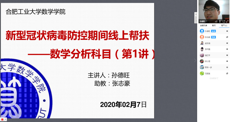 面对新型冠状病毒感染的肺炎疫情,数学学院坚决贯彻落实党中央和教育部党组、安徽省委、学校党委对防控工作的部署要求,坚持把学生的生命安全和身体健康摆在第一位,既要构筑起一道安全可靠的健康防线,又要激发学生主动战“疫”的积极性,形成自我成长的内生动力。学院积极谋划,建立了“考研互助”和“学业帮扶”两大模块的线上学业朋辈帮扶平台,目前已在有序实施中。