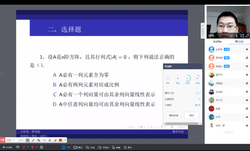 “学科水平提升”采用“网课”形式进行。各辅导小组配备免试研究生主讲和学生党员助教,针对前期收集到的重难点问题在网络平台答疑解惑,并进行一定的扩展和延伸。目前开设的有:《数学分析》、《高等代数》、《解析几何》和《C语言程序设计》等4门课程,组建了10个辅导小组。
