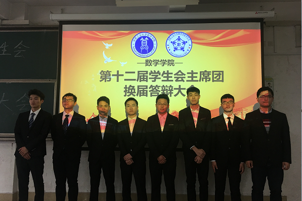 在奏唱团歌后8位竞选同学分别从自身情况、学生会工作收获、岗位认知、工作计划、学生会存在的问题及解决对策等方面进行自我展示。答辩同学张弛有度,各显特色,显现出数学学子蓬勃向上的风采。