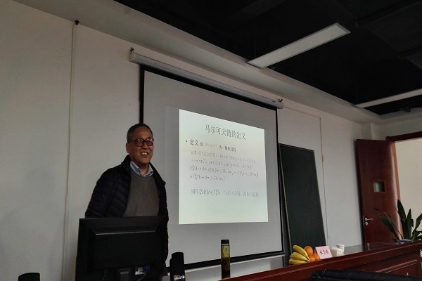 报告会上,杜雪樵教授首先介绍了马尔科夫链的定义及本质;其次用通俗易懂的语言向大家介绍了齐次马克科夫链的过程及具体事例,重点介绍了离散参数下的马尔科夫链;同时详细地说明了遍历性与极限分布、平稳分布、C-K方程的来源及应用,对生灭过程及排队理论也进行了生动的描述。最后,杜老师对同学们提出的相关问题给予了耐心的解答。