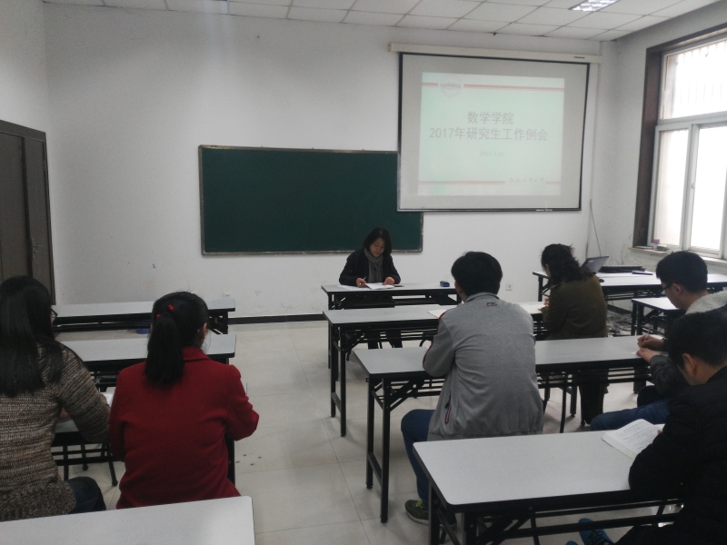 2017年3月27日,在数学学科楼105室召开新学期研究生工作布置会。研究生辅导员王晓莉老师、研究生会主席、辅导员助理、各班班长、各党支部书记参加此次会议。