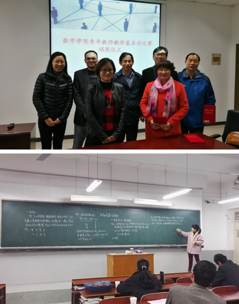 本次院级比赛先由各系部进行预赛选拔,共推选出6位代表参加了学院复赛。复赛采用全板书形式,各参赛教师经过充分的准备,并有效结合了日常的教学实践,充分展现了数学教学的特点,也突出的展现了自己的风采。学院组成的专家评委对每位老师都进行了客观的评价,肯定好的方面,指出存在的不足,并提出了中肯的建议。